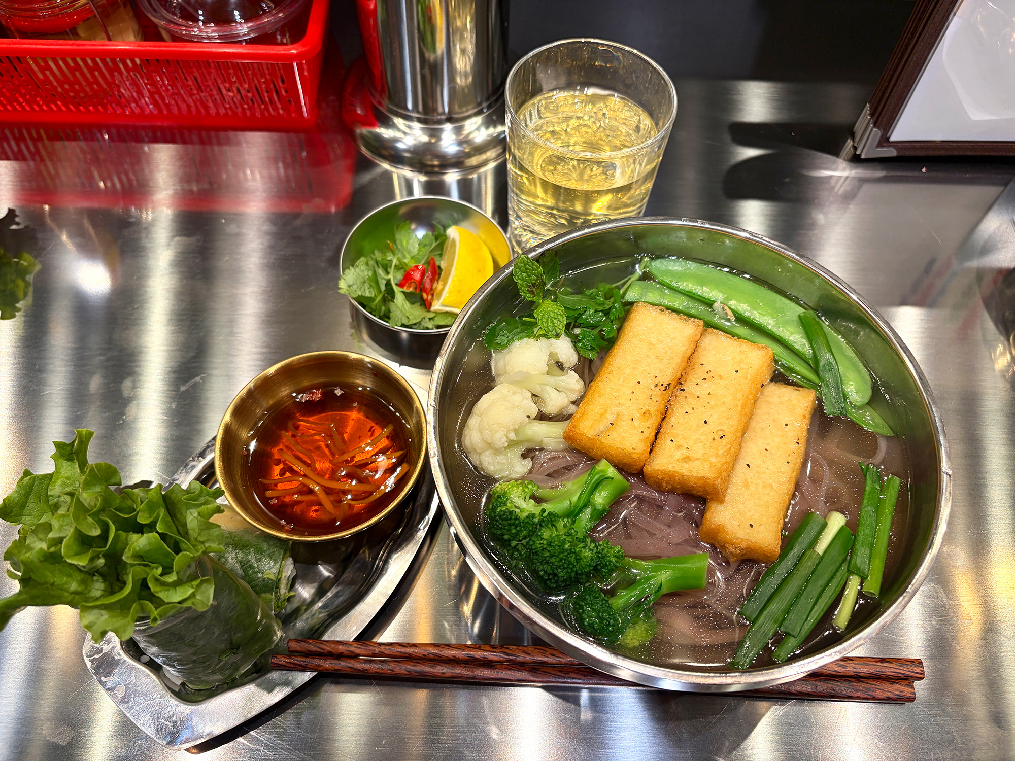例えば、野菜と厚揚げのフォーセットは、やさしい野菜だしスープのヴィーガンフォー。