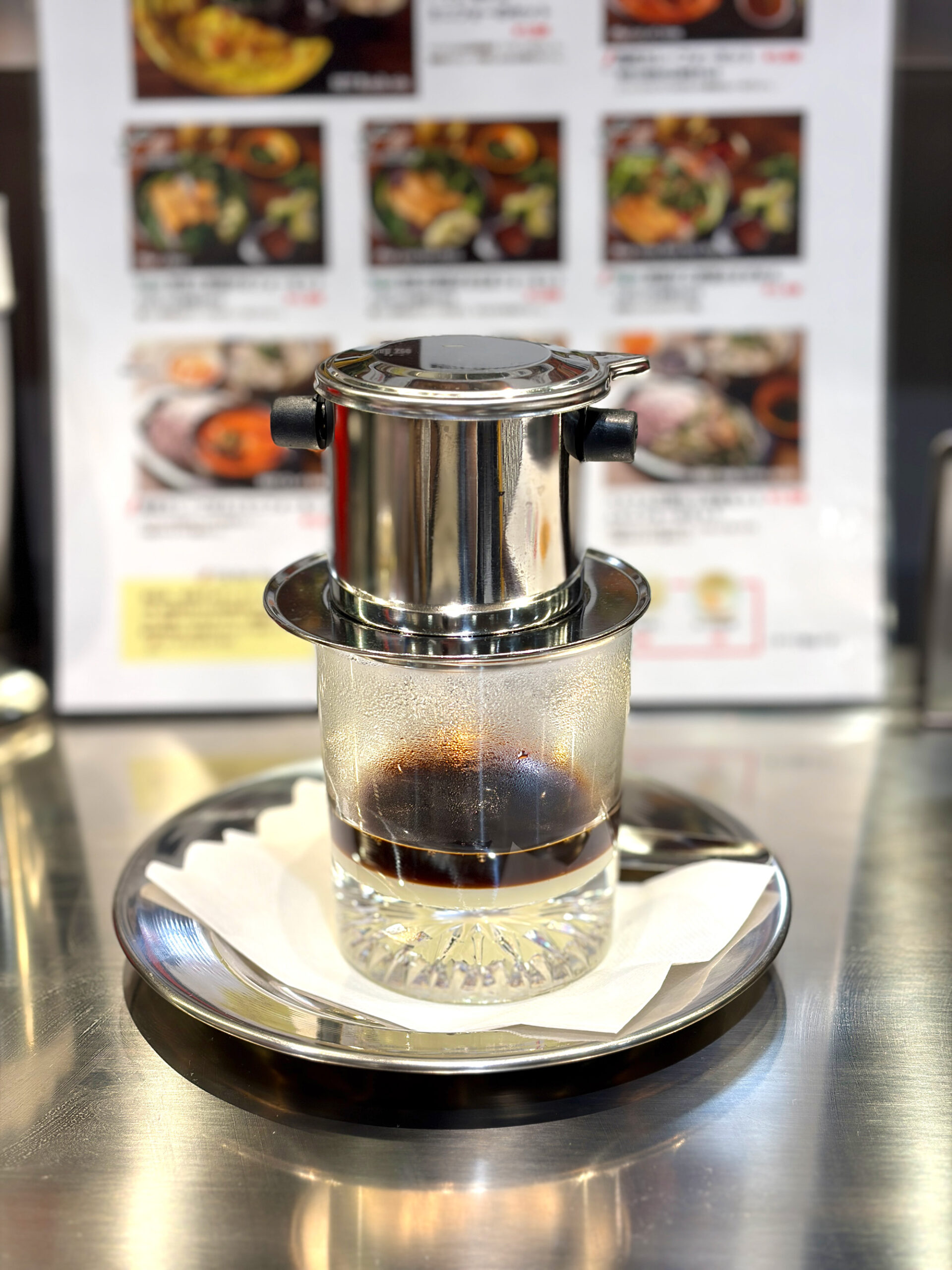 食後にはベトナムの定番、ベトナムコーヒー練乳入りを追加オーダーして、ランチを〆てみました。