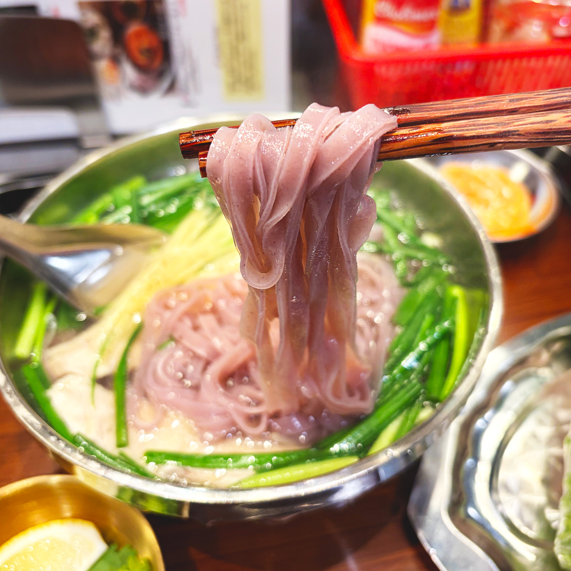 フォーはたいてい米が原料の米麺ですが、こちらは玄米フォー!紫っぽい麺がかわいいし、ヘルシー感出てます!