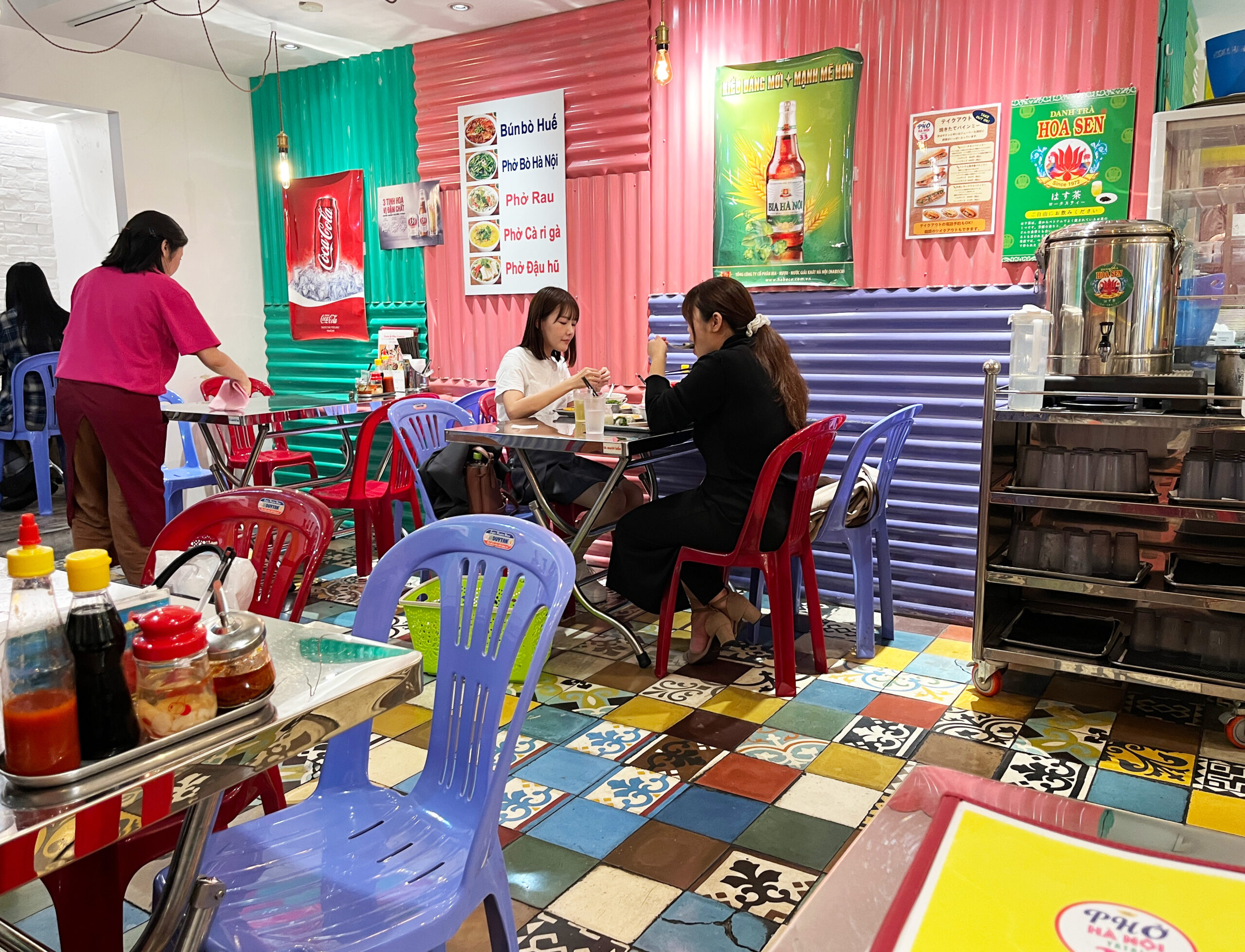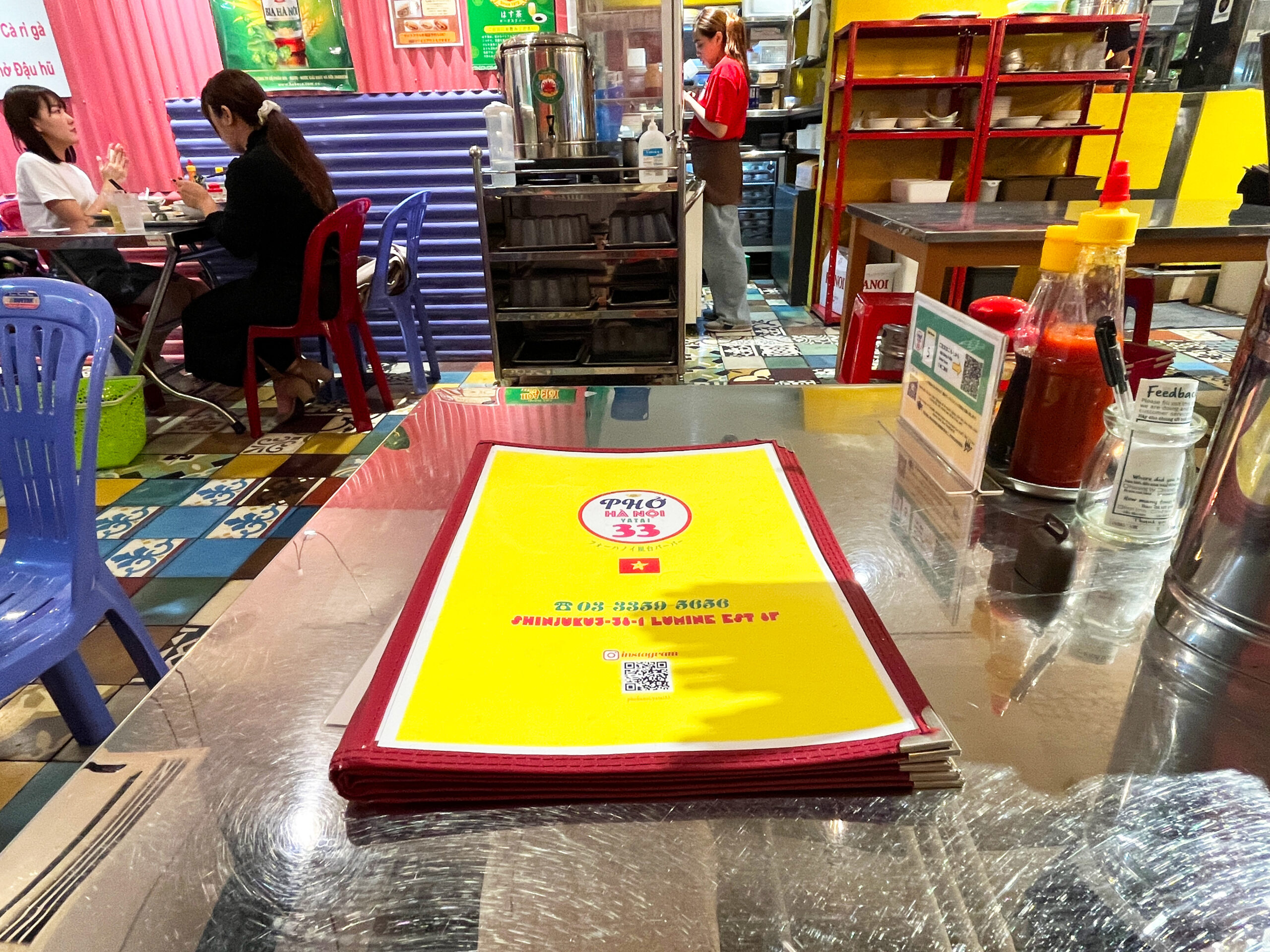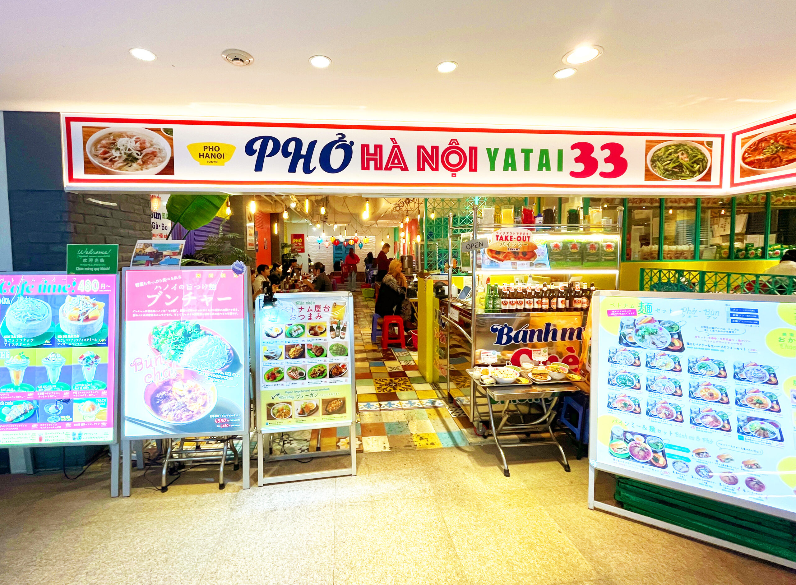 この派手派手色合いはまさにベトナムカラー。看板だってベトナム語でベトナム感満載です。ベトナムでよく見る書体でPHO HANOI YATAI 33と店名が書いてあります!