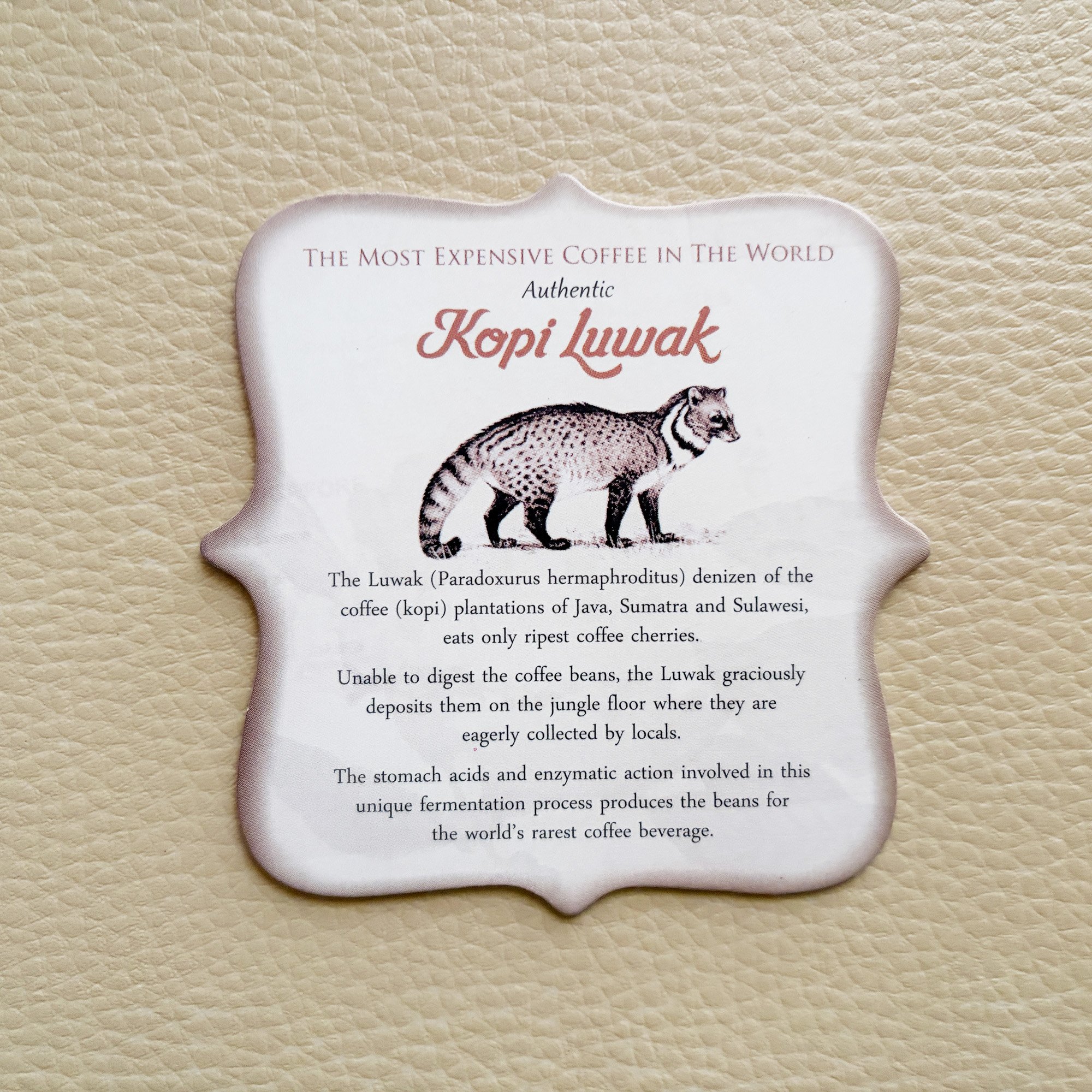 これは「コピ・ルアック(Kopi Luwak)」といって、インドネシアで珍重されるコーヒーなのです。