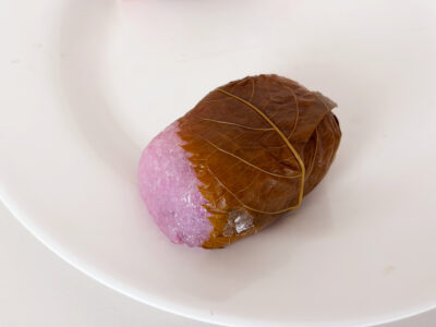 ほんのりさくらの風味がして、葉っぱの塩分と相まって、おいしかったです。