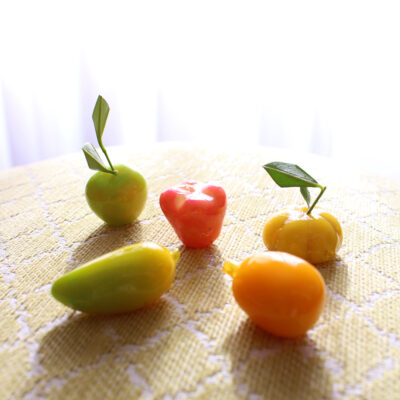 そして、タイの可愛いお菓子代表といえばこちらの「ルーク・チュップ」。フルーツや野菜の色や形をしたミニチュアお菓子です。