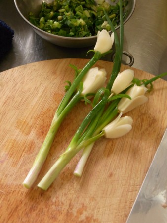 ベトナム料理教室で用意されていたこちらのネギとニンニク。ネギと合体させたかわいらしいニンニクのお花にグッときてしまいました。