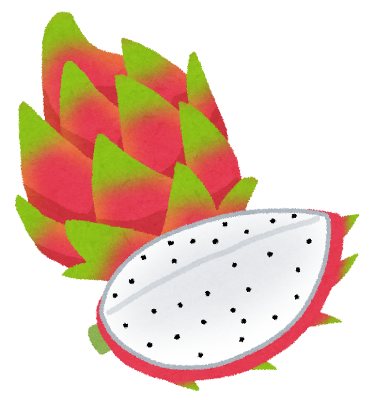 サボテンの実であるドラゴンフルーツは、見た目の不思議さとは裏腹に、カットすると驚くようなみずみずしい果肉が現れます。そしてゴマのような黒いつぶつぶした種が点在しているのが特徴です。