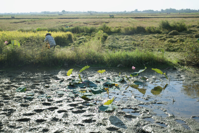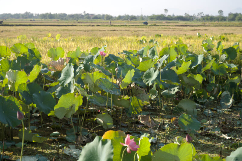 ベトナムの国の花といえる蓮花は、農風景にもあります。蓮は栽培されて蓮の実のおこわやチェー、お茶にします。小さな蓮根は漬物にします。