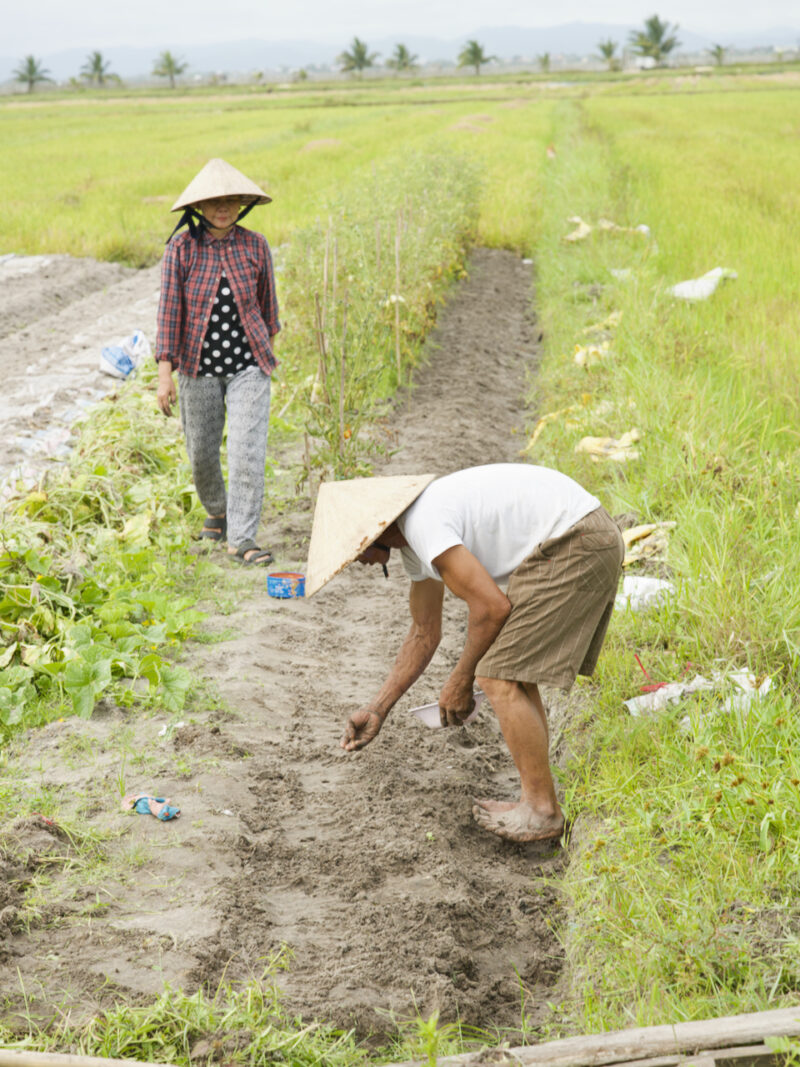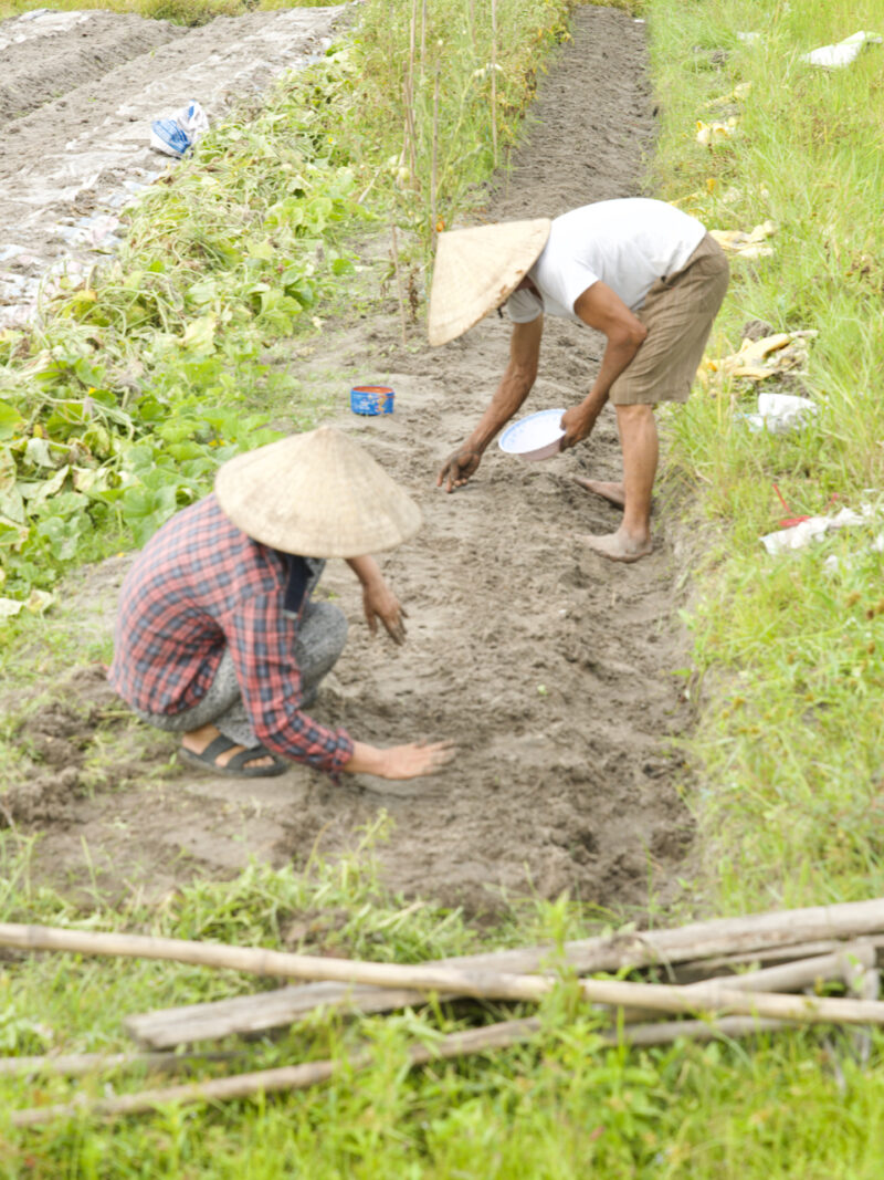 Quảng Điền(クアンディン)郡を過ぎて、海に面したHải Dương (ハイジュォン)村に入ると、水はけの良い、サラサラした砂質の土でスイカとサツマイモを育てています。あまくて美味しいスイカやサツマイモは、フエ市の街中から買いものにくるほどの人気があります。
