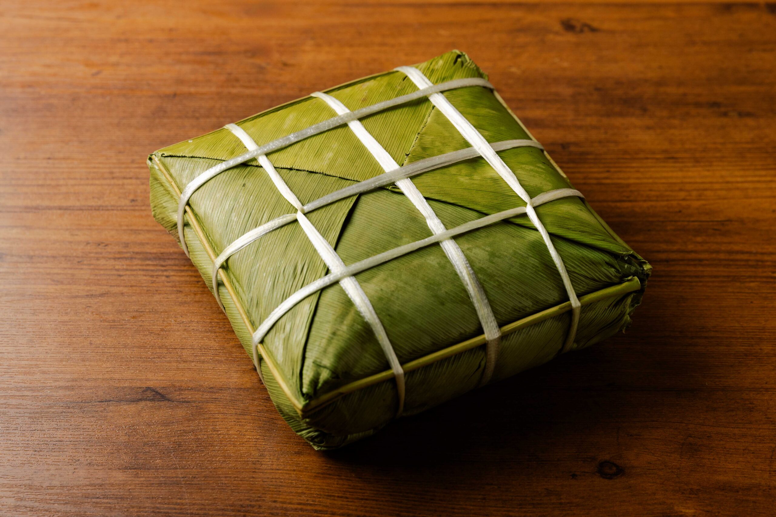 - お召し上がり方:食べやすい大きさに切り、まわりのバナナの葉を取ってレンジで温めたり、フライパンで軽くキツネ色になるまで焼いてお召し上がりください。