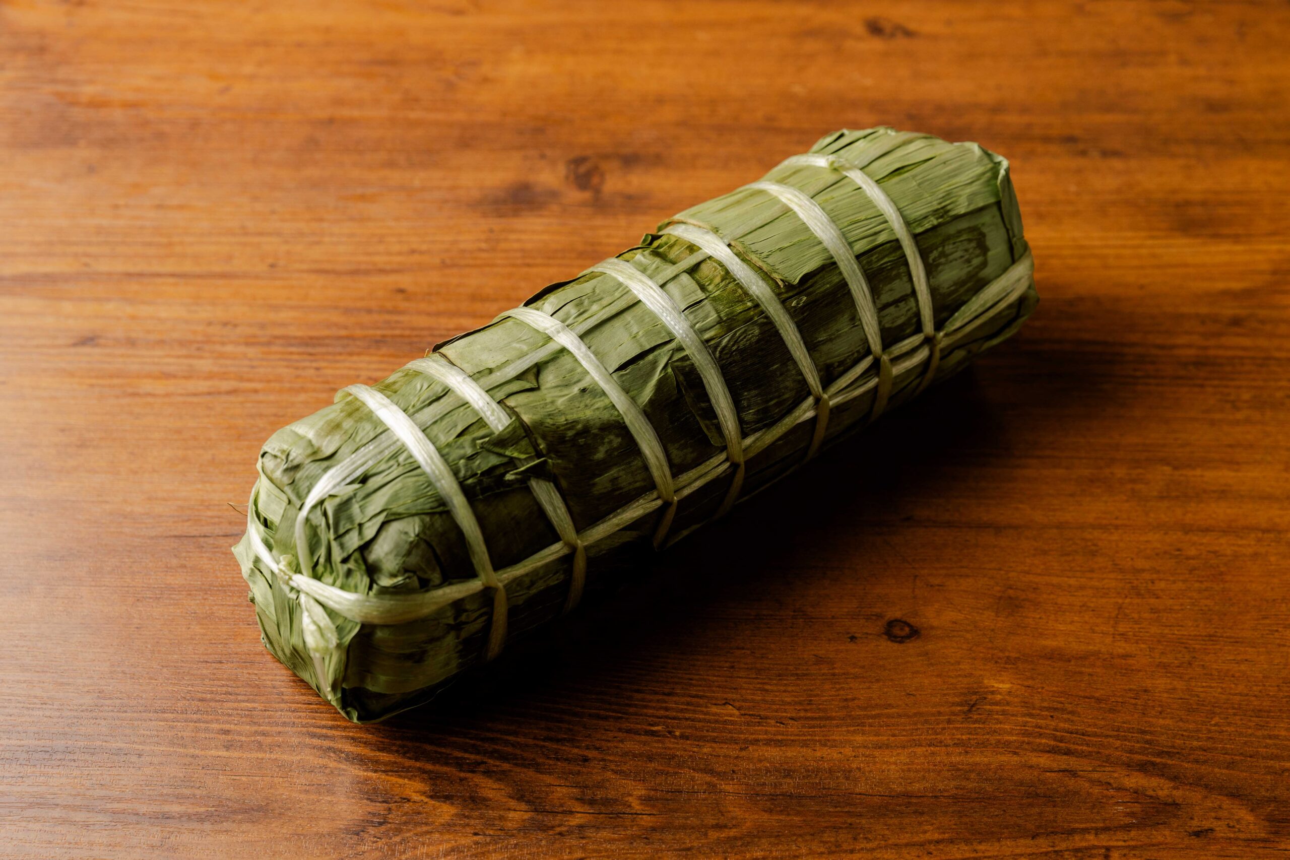 - お召し上がり方:食べやすい大きさに切り、まわりのバナナの葉を取ってレンジで温めたり、フライパンで軽くキツネ色になるまで焼いてお召し上がりください。